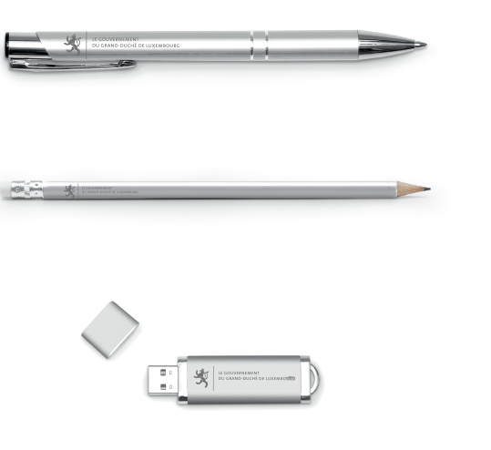 The size of the logotype on this type of gadget must be adapted to the dimensions of the object. In this case only, the logotype can be used at a size smaller than the minimum size defined in this charter, provided that it remains legible and visually balanced.